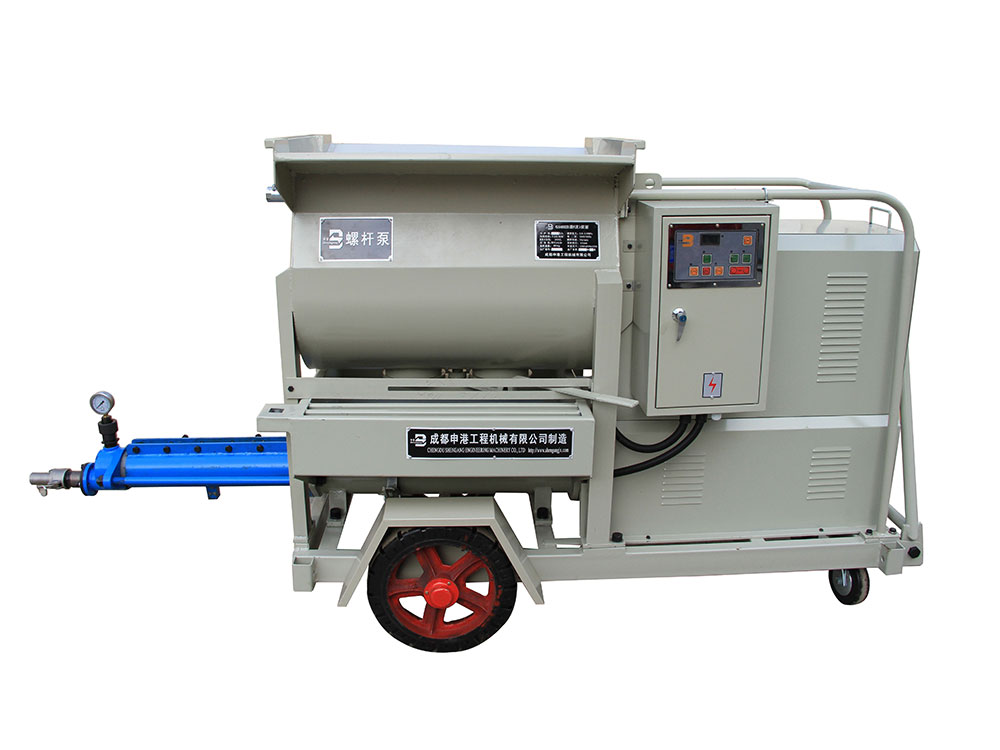 該泵結(jié)構(gòu)新穎、構(gòu)思獨特;避免了灌注稠漿較困難的不足,使用安全方便、效率高。本機(jī)主要由攪拌機(jī)構(gòu)、增壓機(jī)構(gòu)及電控系統(tǒng)等組成,其特點如下: